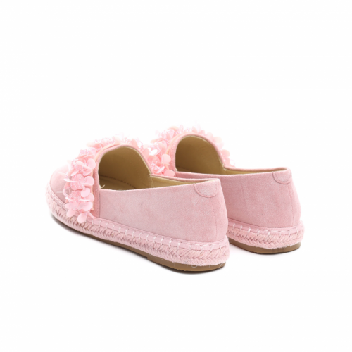 Originální dámské espadrilky Marry mají semišový povrch a ozdobný lem z flitrů a korálků na nártu. Měkká textilní stélka Vám dodá pohodlí a komfort během nošení. Espadrilky stačí pouze nazout a můžete vyrazit z domova. Díky svému střihu jsou espadrilky všestrannou obuví vhodnou na jaro i léto a to k různým denním outfitům. Podrážka a špička boty je zdobena splétaným lemem z přírodního vlákna.